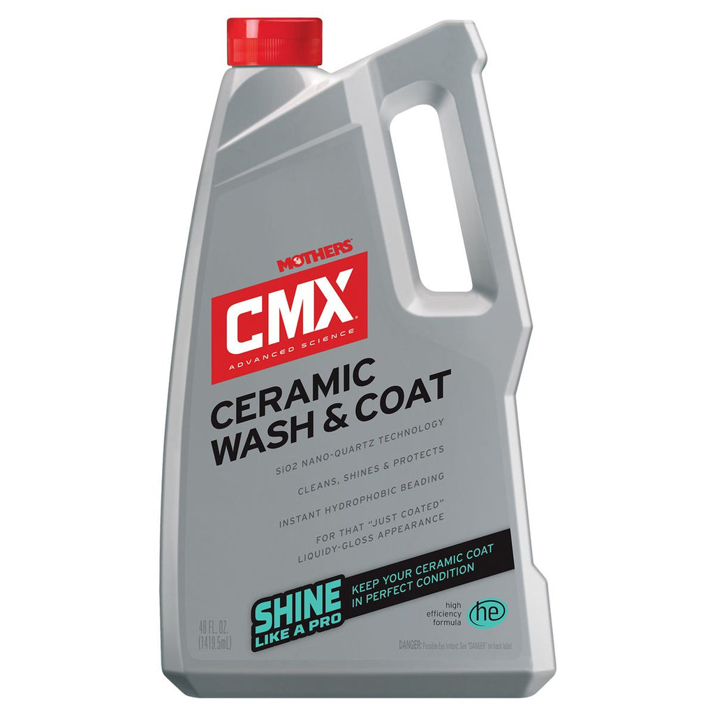 Mothers CMX Ceramic Wash & Coat is the fastest way to a brilliantly clean, just coated liquidy-gloss appearance and SiO2 nano-quartz protected finish. Combining powerful penetrating surfactants and state-of-the-art water softening polymers with the unmatched hydrophobic properties of ceramic coatings, weve uncorked the real secret to vehicle maintenance. This high efficiency (HE), low sudsing, lubricating formula dissolves, encapsulates and suspends dulling contaminants while neutralizing water spot-causing minerals. This minimizes drying time and helps to protect your paint from wash-induced scratches and swirls, all while rinsing clean without streaking or spotting. Environmentally friendly and pH neutral, this formula can be used as a bead booster over your existing ceramic coating, sealant or wax, or even as a stand-alone quick-coat on uncoated vehicles. Washing and caring for your vehicle has never been easier. Join the revolution!