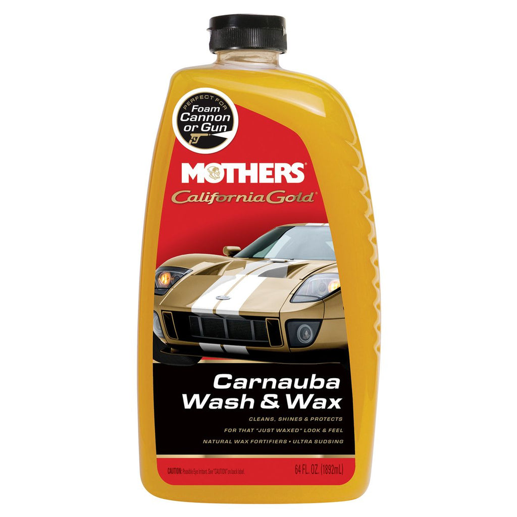 Mothers Carnauba Wash & Wax is the quick and easy way to clean, shine and protect your paint. Used between regular waxing, Carnauba Wash & Wax easily dissolves and removes stubborn road grime and dirt, all while boosting your existing waxgiving you that just waxed look and feel. Powerful, super-sudsy, biodegradable and pH balanced, this wash & wax has it all, making the perfect addition to a well-maintained finish. Featuring an environmentally friendly formula and quick rinse, youll be left with a spot-free, brilliantly shining finish.