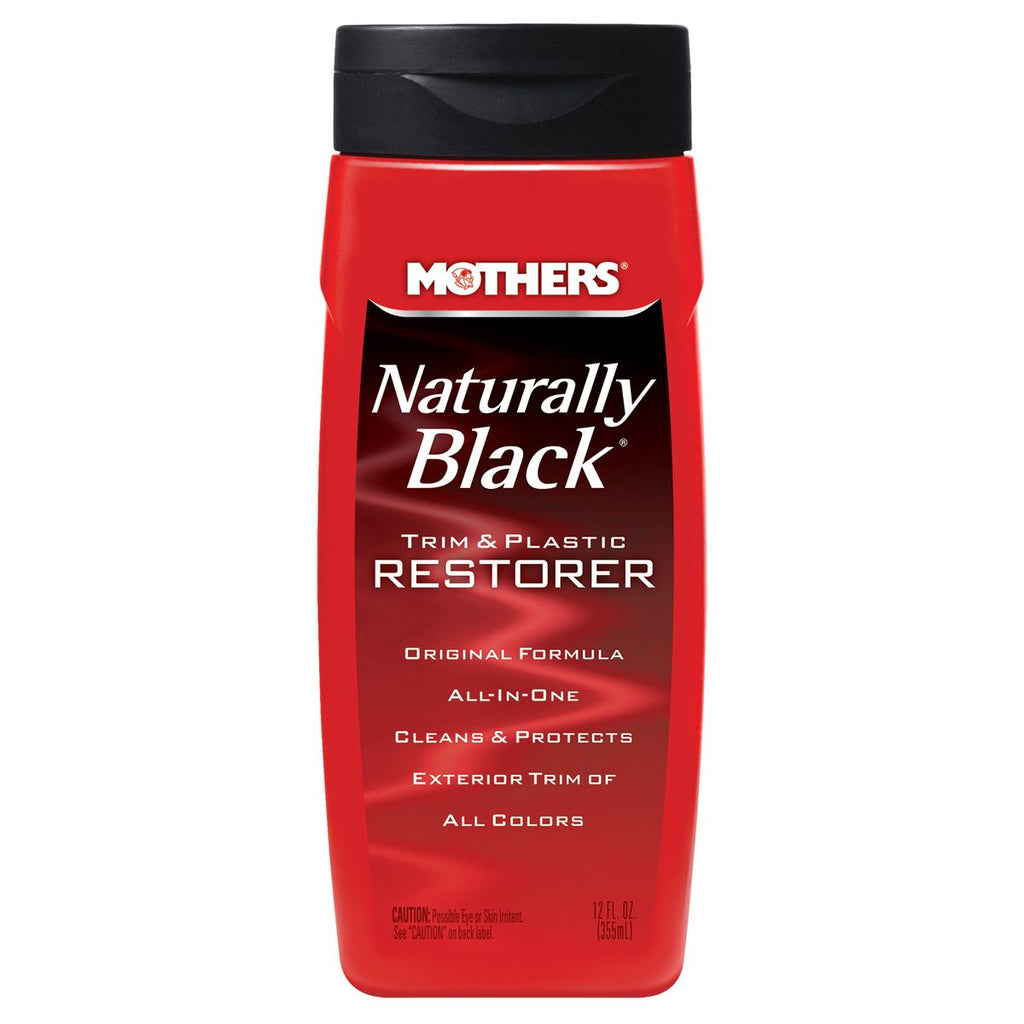Mothers Naturally Black Trim & Plastic Restorer is the original Back-to-Black formula youve come to know and trust, with a new look and even more value. Remove light oxidation, dirt, wax residue and surface film with ease, bringing back that like-new color and protecting against further deterioration caused by sun, smog, ozone, water, chemicals and airborne contaminants.